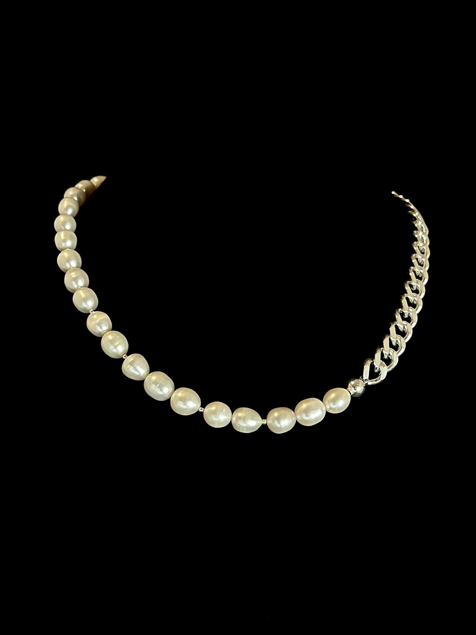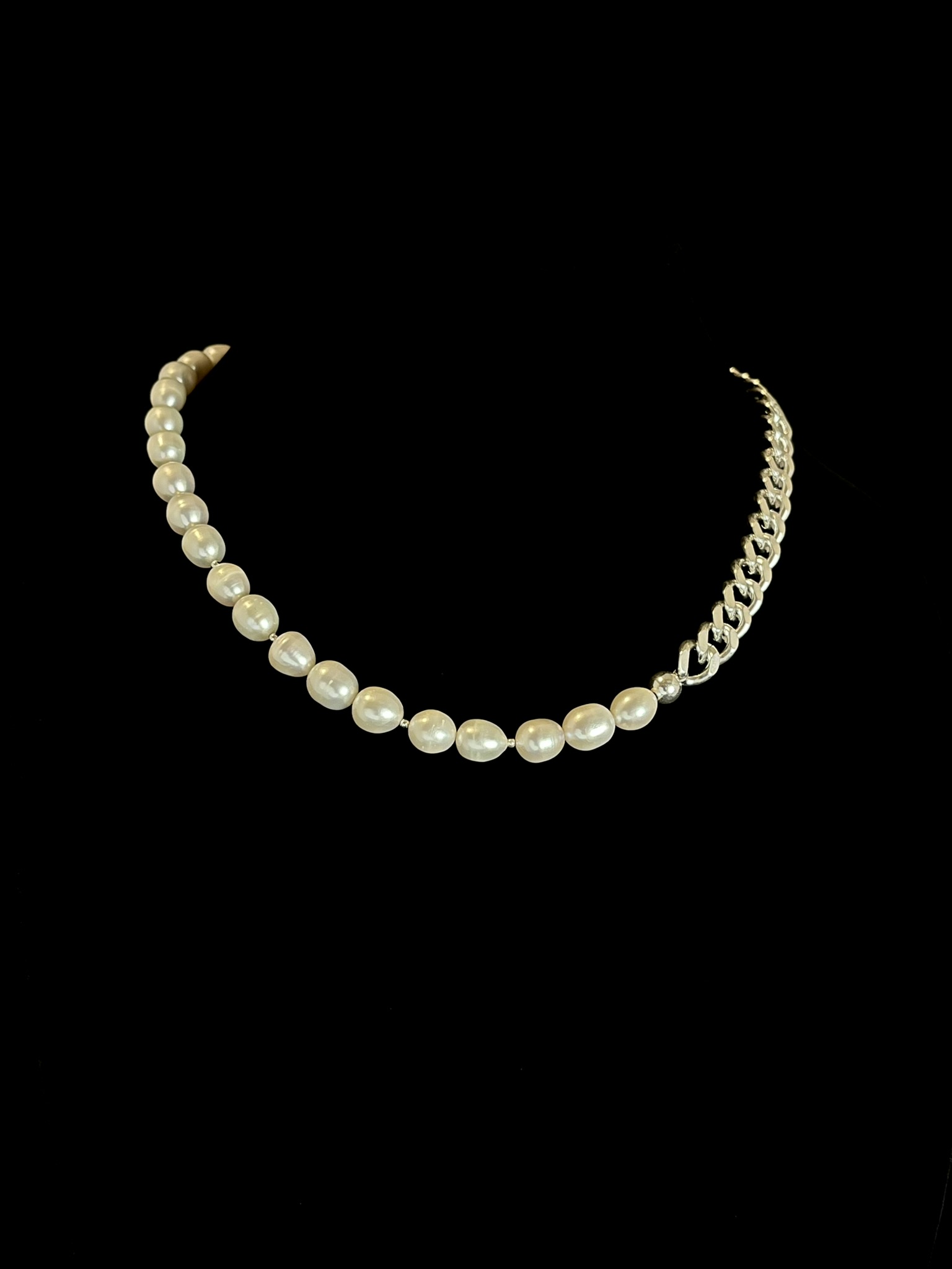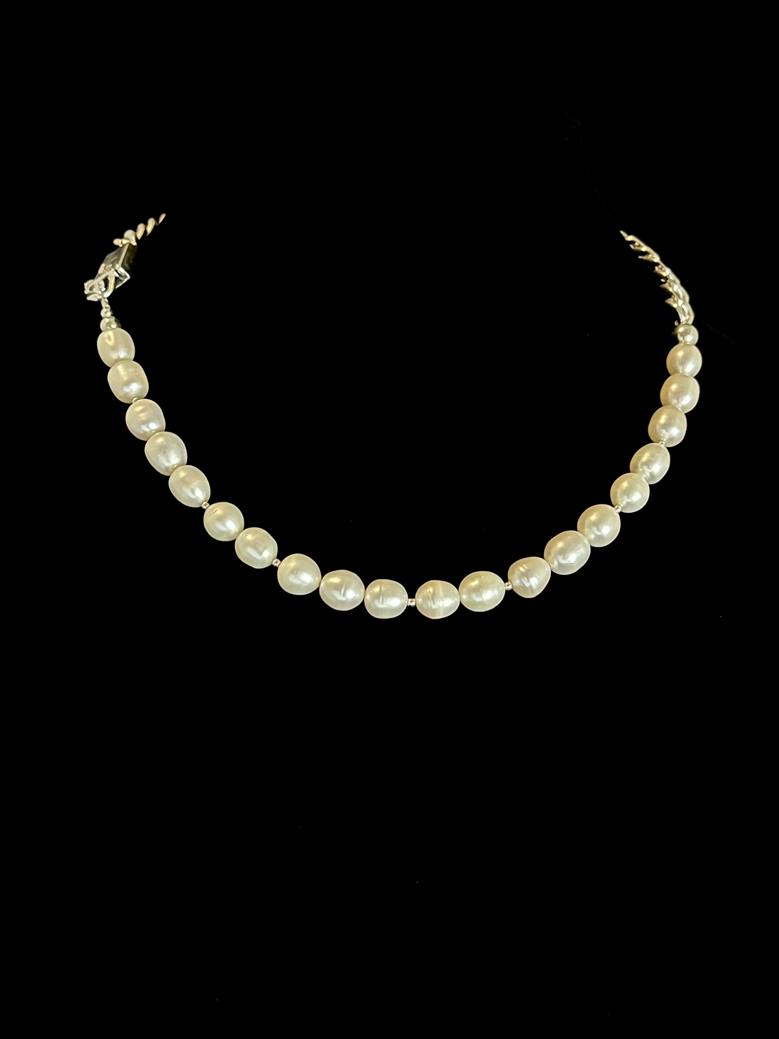 Length: 20 inches Pearl Sizes: Large (7 mm +) Materials: Freshwater pearls / sterling silver accents / gilded silver chain Daily wear. Day and night friendly (gym / shower / sleep).
