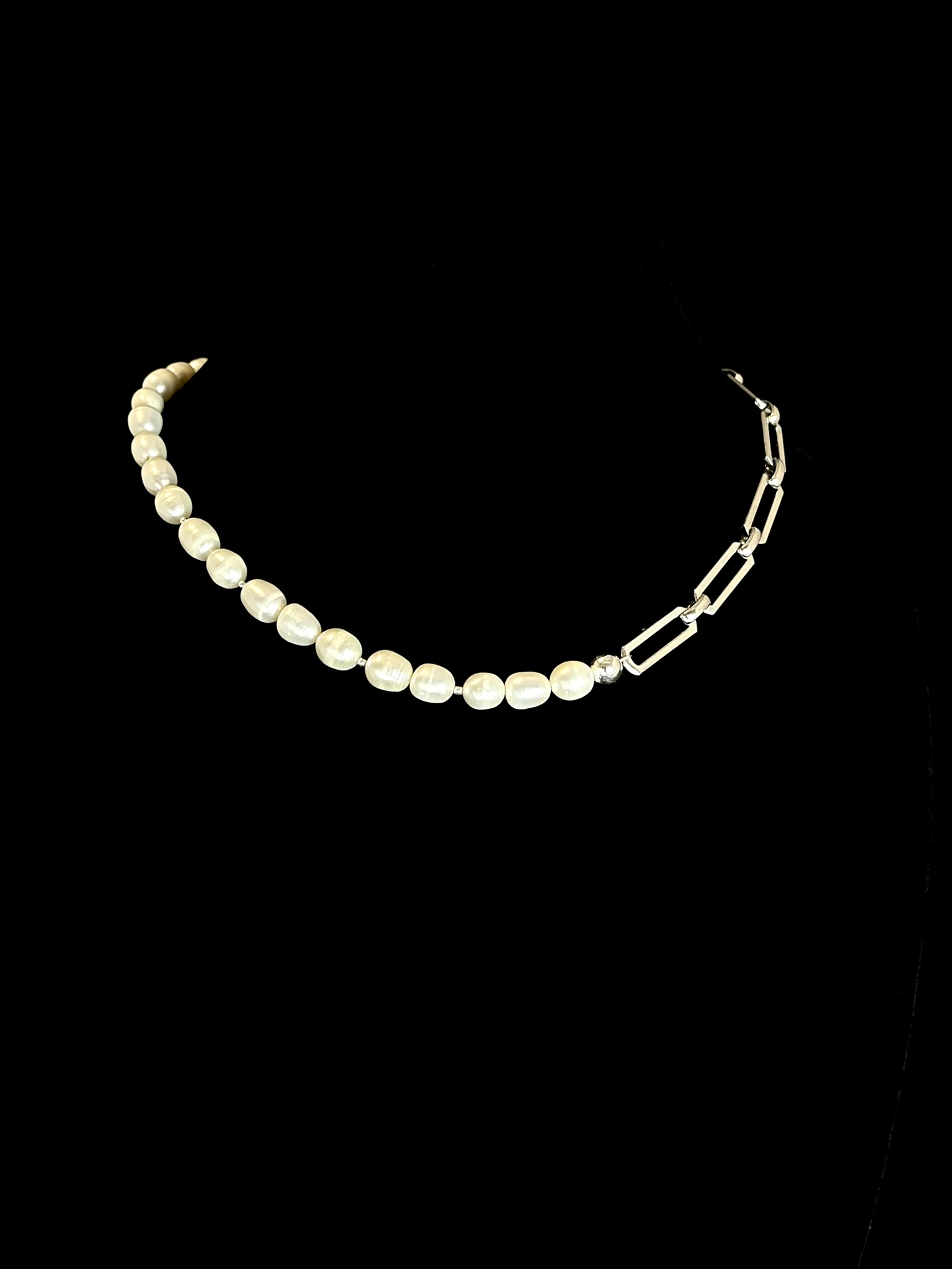 Timeless Design Meets Modern Style. Experience the perfect fusion of elegance and artistry with Bold Baroque freshwater pearls carefully paired with a vintage Monet Co. designer chain. This blend of timeless design and contemporary sophistication makes this piece truly one-of-a-kind.