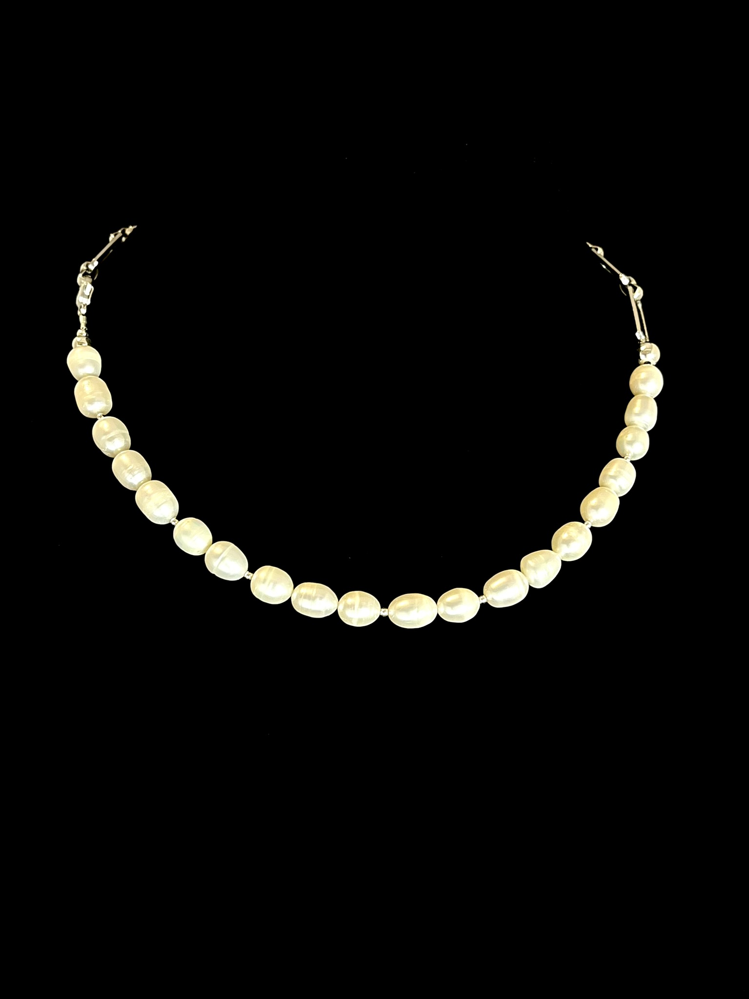 Materials: Freshwater pearls / sterling silver accents /Monet Co. designer chain